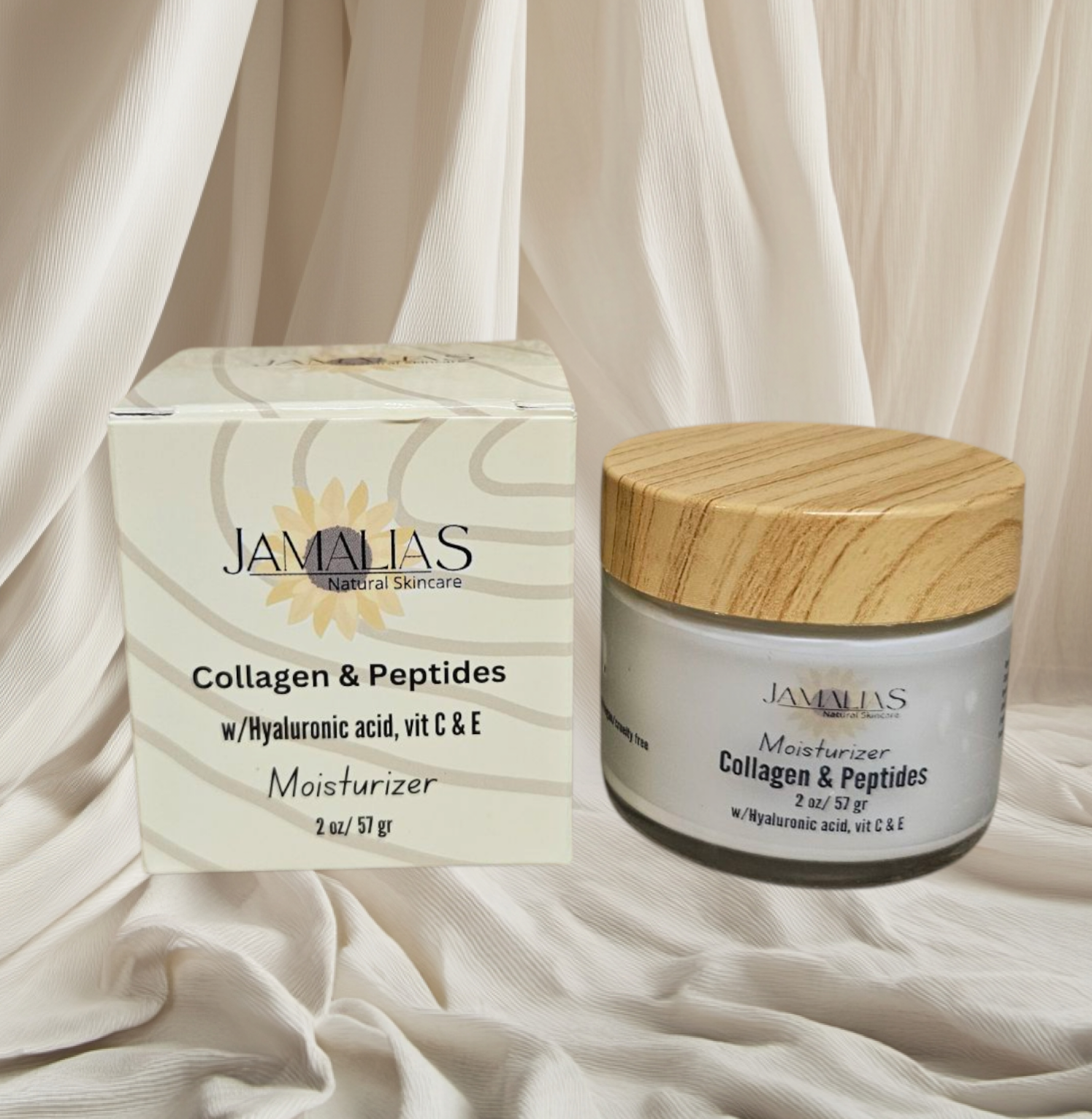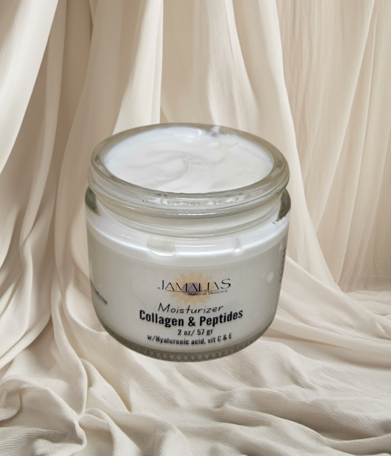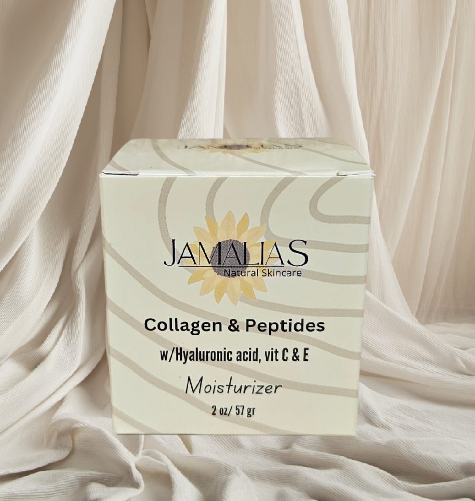Indulge in our luxurious collagen and peptides moisturizer, expertly blended with nourishing jojoba, shea butter, and fractionated coconut oil to provide long-lasting hydration. Hyaluronic acid and glycerin work in tandem to lock in moisture, while vegetable collagen and peptides stimulate collagen production, reducing fine lines and wrinkles. The addition of frankincense oil promotes relaxation and reduces inflammation. Treat your skin to this sumptuous, non-greasy moisturizer and reveal a smoother, brighter, and more radiant complexion.