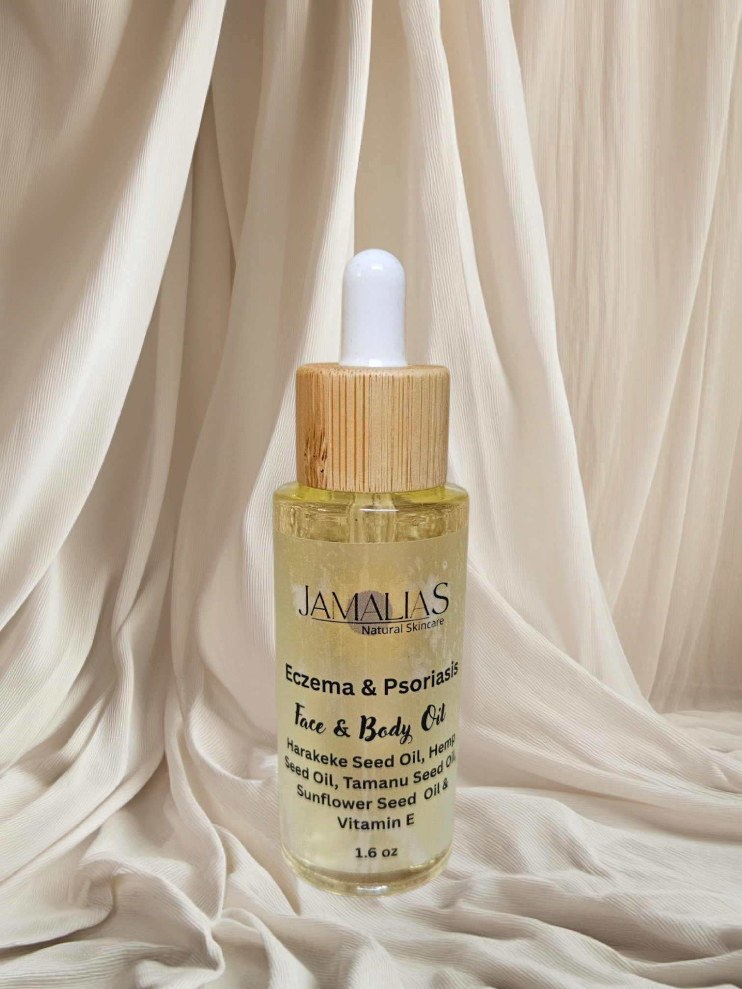 Introducing our Eczema and Psoriasis Face and Body Oil, carefully crafted with natural ingredients to provide long-lasting relief from dry, itchy skin. Our unique blend of sunflower oil, harakeke seed oil, tamanu seed oil, and vitamin E works to soothe, nourish, and protect your skin.