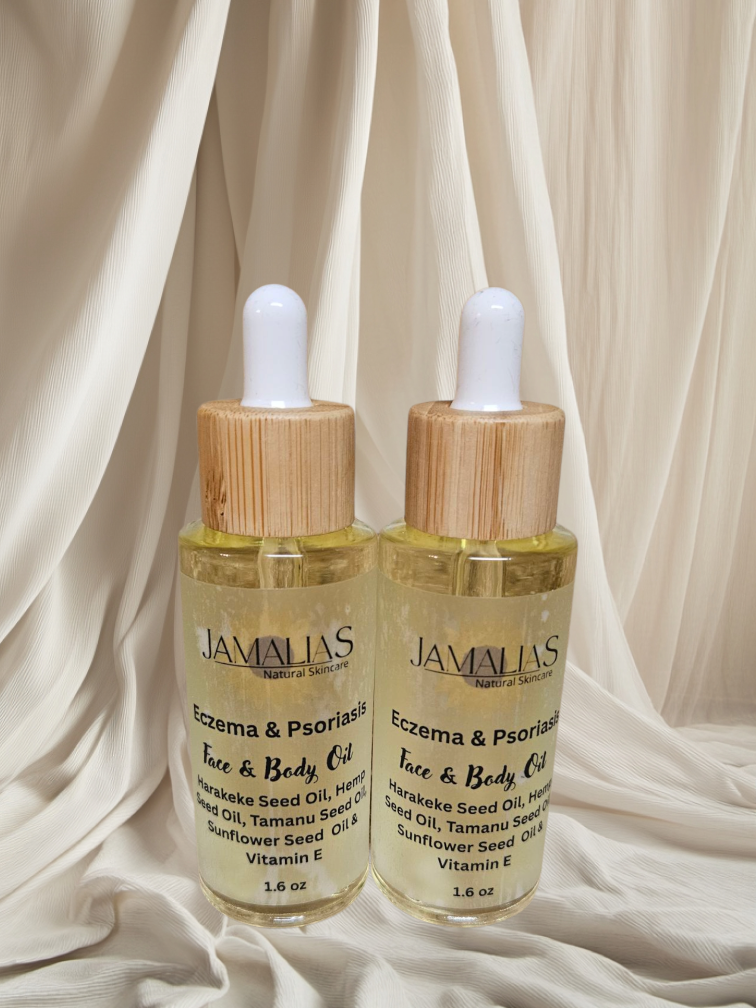 Our oil is gentle enough for daily use, non-greasy, and easily absorbed into the skin. Perfect for face and body use, it's ideal for those suffering from eczema, psoriasis, and dry skin conditions.